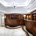 The Exe International Palace, Rome Termini hotel, has recently been refurbished in order to offer our guests the maximum comfort and modern-style living; however, a large part of the common areas maintain their original style and décor, taking us back to the times of the struggle for unification. The result is a renaissance type of architecture and ambiance, inspired in the Palladio villas and equipped with the most up-to-date services and amenities. The entrance hall to the palace welcomes guests with its gold-inlaid stuccoed ceiling.