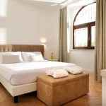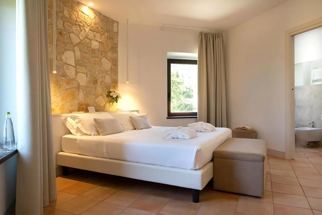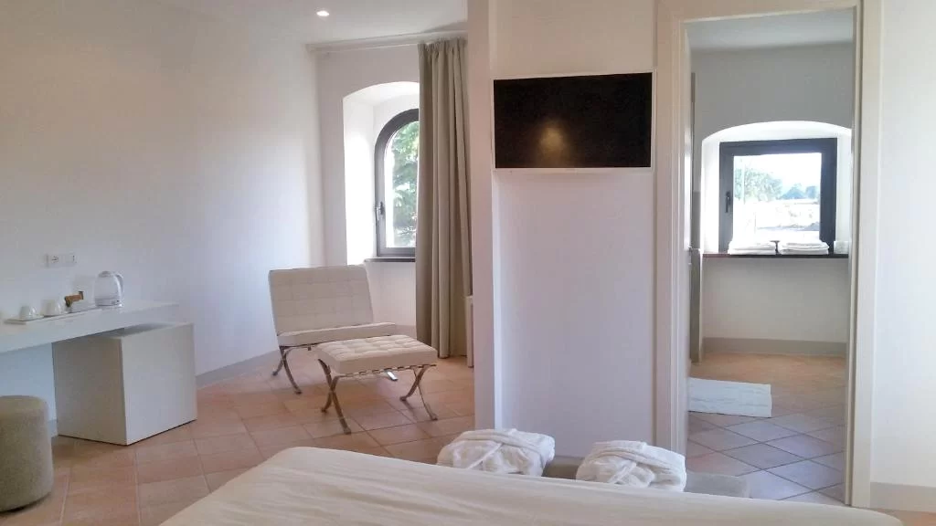 The stone walls, the terracotta floors and the freshness of the design furniture blend into a harmonious whole and characterize the Junior Suites located on the first floor of the main house. From their windows you can admire the gentle lines of Mount Subasio and the nearby cultivated fields.