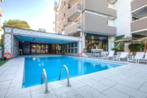 Transparent like the sky and fresh like the sea in front of our eyes. Warm and enveloping like a hug in the cold winter. It is the fresh water swimming pool of Hotel Imperiale Rimini & Spa, heated in winter and caressed by the sun in summer.