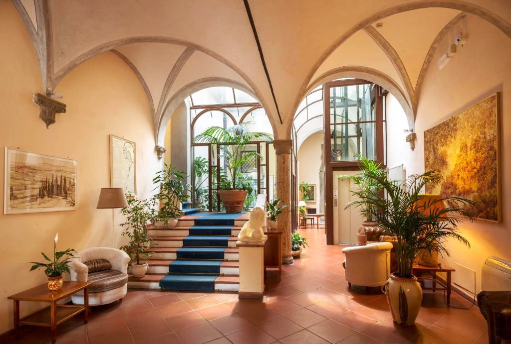 Dating back to the 11th century, Leon Bianco is in Piazza della Cisterna, one of San Gimignano’s main squares. During summer, breakfast is served on the quiet, relaxing terrace. Rooms have original features such as wood-beamed ceilings and modern amenities including air conditioning and satellite TV. WiFi access is available in the lobby and rooms. There is also an internet point. Breakfast at is buffet style, while the bar serves drinks out on the terrace in warm weather. The hotel also features a fitness center and billiards room. You can drive to the hotel, where you are granted a 20-minute parking permit to unload luggage. The shortest route is via the Porta San Jacopo city gate. Public parking is available outside the historic walls, between 5 and 10 minutes’ walk away.
