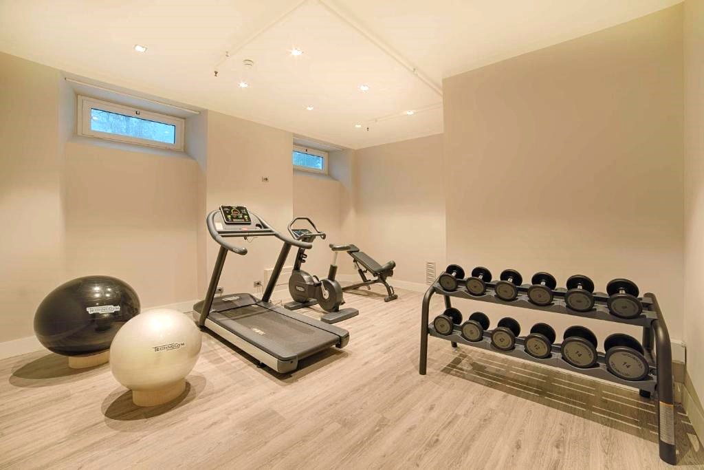 Our medium-sized fitness room is equipped with cardio machines and weights. You’ll find it below reception on our basement floor.