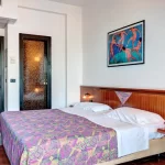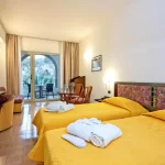 The room is located in Olimpo (or Belvedere), with ensuite bath or shower and hairdryer and offers telephone, sat.TV, minibar, safety deposit box, tea & coffee maker, air conditioning (available during hot season and at Management’s discretion), balcony or a small terrace with table and chairs overlooking the inner garden or the hill.