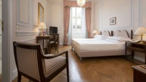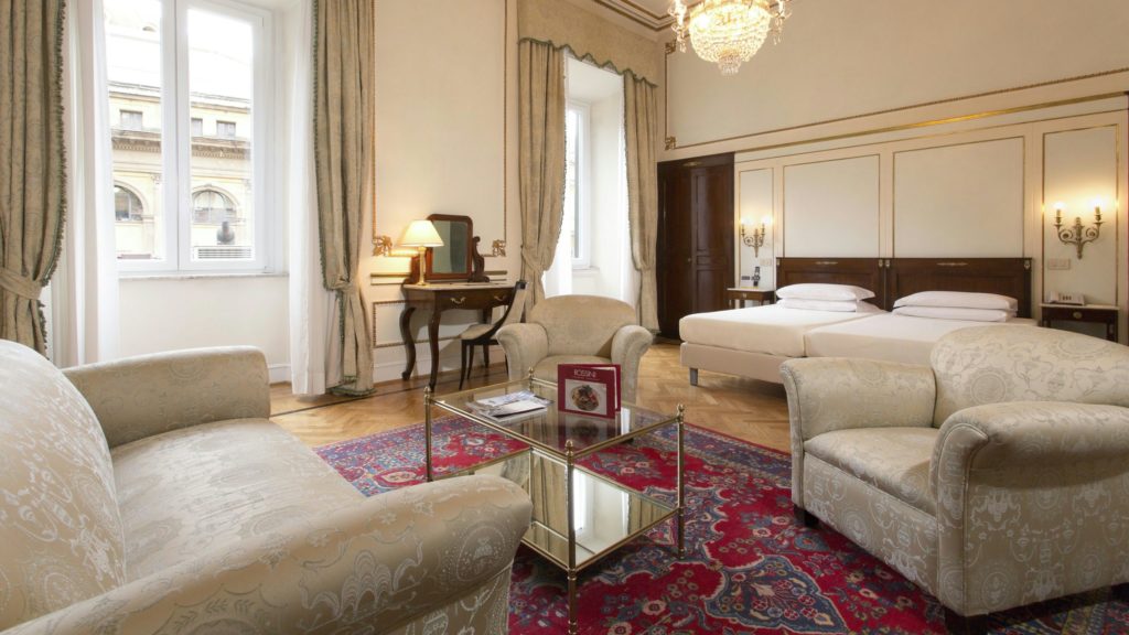 The Hotel Quirinale was founded near Via Veneto in 1865. Predating the Rome Opera house by a couple of years the two buildings are connected by a charming passage through a glorious inner garden. Even the colours of the 17th and 18th century engravings are reminiscent of the tales told in the Opera.