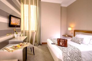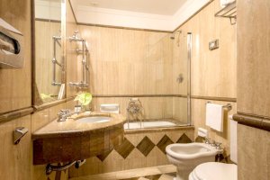 Set in a renovated historical building, the Savoy offers a rooftop bar with panoramic views across the Eternal City and free WiFi throughout. Spagna Metro Station is 1,312 ft / 400 m away. This private residence was converted into a hotel in 1920 and preserves its original style. You are greeted by the courteous and professional staff in the spacious lobby, complete with glass chandeliers and marble floors. All air conditioned, the elegant rooms with attached bathroom come with a satellite LCD TV, and a mini-bar. Some rooms offer extra space and luxury toiletries. An extensive sweet and savory breakfast buffet is available daily. The à la carte restaurant serves Mediterranean cuisine made with fresh, seasonal ingredients. A wide selection of fine Italian wines is also available. Piazza Barberini square is 1,476 ft / 450 m from the property, while the Trevi Fountain can be reached on foot in 15 minutes.