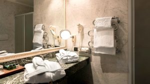 | – Lighted make-up/shaving mirror (in most rooms) | – Plush terry robes |