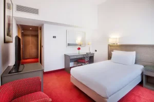 Providing free toiletries, this double room includes a private bathroom with a bath or a shower, a bidet and a hairdryer. The air-conditioned double room provides a flat-screen TV with satellite channels, soundproof walls, a mini-bar, a wardrobe as well as city views. The unit offers 1 bed.