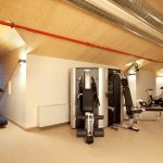 The gym on the 5th floor is in a charming area, with a wooden ceiling and stunning views out across the city.