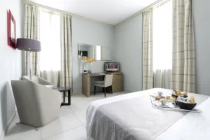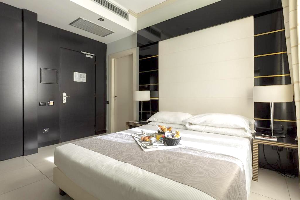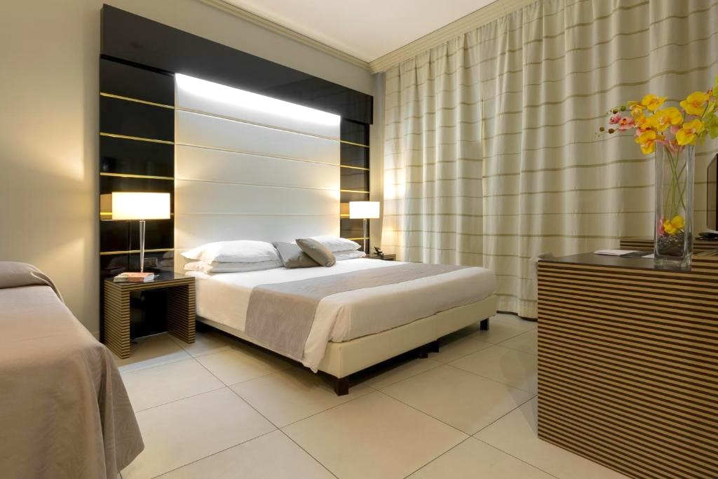 The Executive Rooms are located on the upper floors of the building and are designed for relaxing stays. All rooms, which feature modern furnishings and are fully soundproofed, have: LED TV with free satellite channels, en-suite bathroom with shower/bath tub and hairdryer, independent air conditioning, minibar, telephone, safe, bathroom towels and complimentary toiletries.