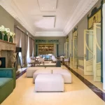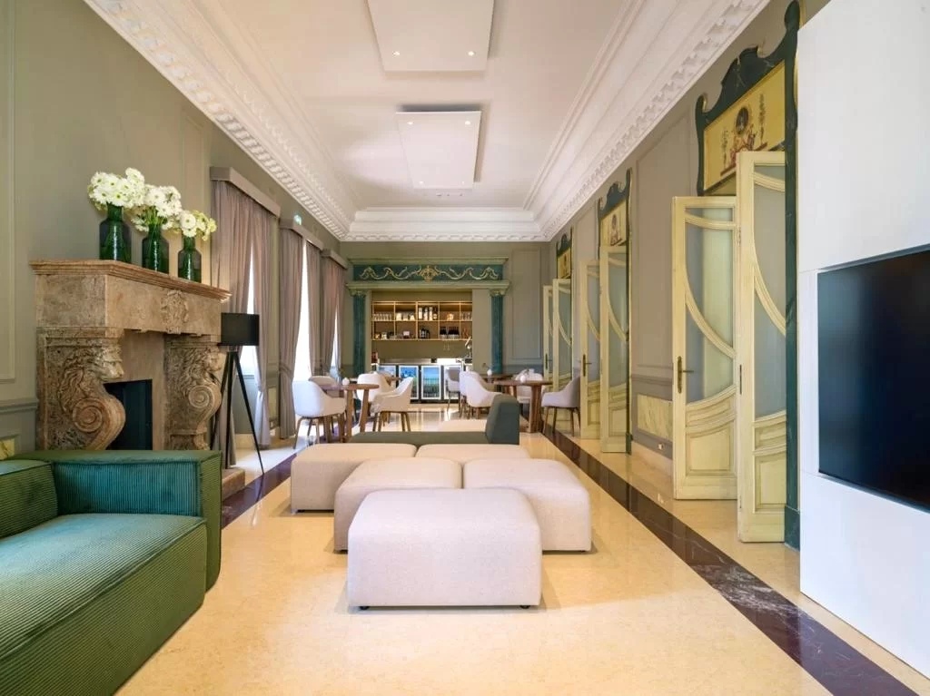 A multifunctional space with a variety of interpretations, the lounge area ensures the utmost comfort down to the last detail. Settle into the elegant chairs for stimulating conversations with friends, indulge in a leisurely read, or even study with friends. The space—with its adjoining bright winter garden—is a relaxing haven bathed in the warm light of the sun, while on cloudy days, the fireplace adds a cozy warmth. Immerse yourself in this atmosphere and feel free to help yourself from the well-stocked honesty bar.