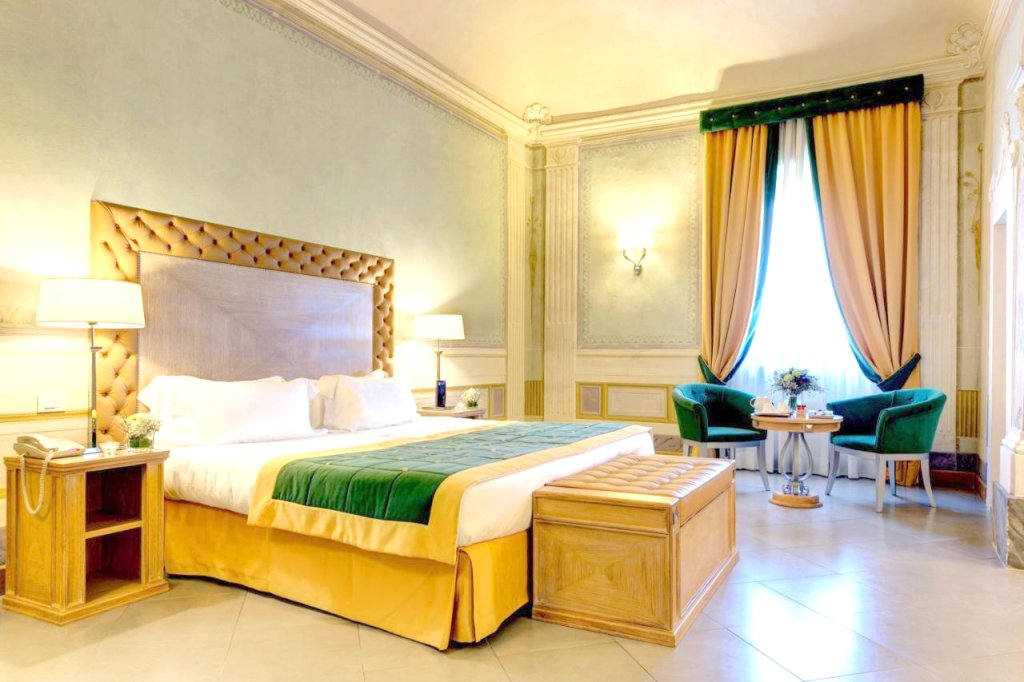 This spacious and elegant suite features frescoed ceilings, a seating area and garden views. It is air conditioned and comes with a satellite flat-screen TV, a mini-bar and private bathroom.