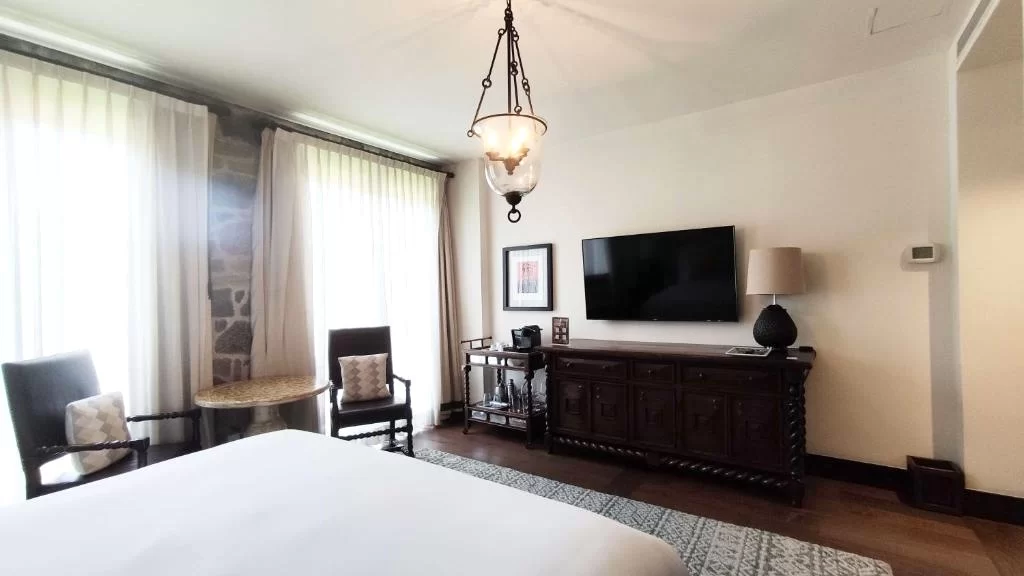 Immerse in Mexico’s cultural fabric with Talavera tile flooring and ornaments. This hotel suite offers a spacious king-size bed, marrying tradition with luxury.