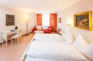 Just 328 ft / 100 m from Lake Lucerne, Hotel Luzernerhof in Lucerne’s Old Town is within a 5-minute walk from the Chapel Bridge and the Lion Monument. It features a French restaurant. The nonsmoking rooms at Hotel Luzernerhof feature a flat-screen cable TV, a seating area, and wooden floors. Each floor has a balcony where guests can smoke. Brasserie Joel’s serves fine French cuisine. Both the Luzernerhof and the restaurant have been family-run for over 60 years. A souvenir shop can be found on site and guests can use an internet terminal.