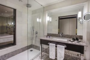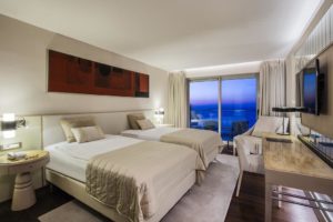 All standard rooms have a sea-view balcony and spa bath. LCD TV with satellite channels, and a mini-bar is standard for each room type. Mini-bar is filled with two bottles of water, two bottles of mineral water and two soft drinks. Free WiFi is available in the hotel’s public areas.