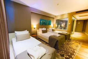 Much more than a thermal hotel, Doğa Thermal Health & Spa opened in 2014. Doğa Thermal Health & Spa will not only be the region’s leading thermal hotel; its congress tourism-oriented features will also make it a popular destination for Denizli’s business community. Boasting healing thermal waters that remain at the same temperature throughout the year, the 7,459 ft² / 693 m² Physiotherapy & Health and Spa center, four meeting rooms, and recreational and social areas, Doğa Thermal Health & Spa offers much more than a thermal hotel. Located 1.8 mi / 3 km from Pamukkale, a UNESCO World Heritage Site, and approximately 1 hour (37.28 mi / 60 km) from Denizli Çardak Airport, Doğa Thermal Health & Spa is one of the most exclusive 5-star hotels in the Karahayıt-Pamukkale region.