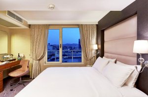 Unwind in this spacious King Deluxe Room, 29 sq.m./312 sq.ft., located on the corners of the hotel and offering fantastic views of the city. Relax in the large bathroom equipped with a walk-in shower. Have a restful night’s sleep in the king-size bed and stay connected with complimentary WiFi or choose one of the many satellite TV channels on the flat-panel TV. After a busy day, just unwind and make yourself a coffee or choose one of the many refreshments available from the mini-bar. This stylish room also features an in-room safe, iron/ironing board and individually controlled air-conditioning.