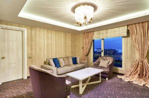 52 sq m/559 sq ft corner suite, ocean views, separate living area, 2 LCD TVs, whirlpool tub Take in panoramic views of the ocean from this spacious Presidential Suite, located on a corner of the hotel. Unwind in the separate living area, stay entertained with two LCD TVs, and keep in touch with complimentary WiFi. Refresh in the bathroom which boasts a whirlpool tub and a separate walk-in shower. This suite also features a walk-in closet, coffeemaker, and mini bar. Special touches include bathrobes and slippers.
