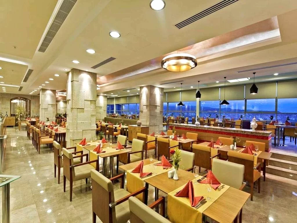 The family-friendly restaurant serves Turkish and international cuisines with halal, vegetarian, vegan, gluten-free, and dairy-free options. Breakfast is available as a buffet, and the bar offers a variety of beverages.