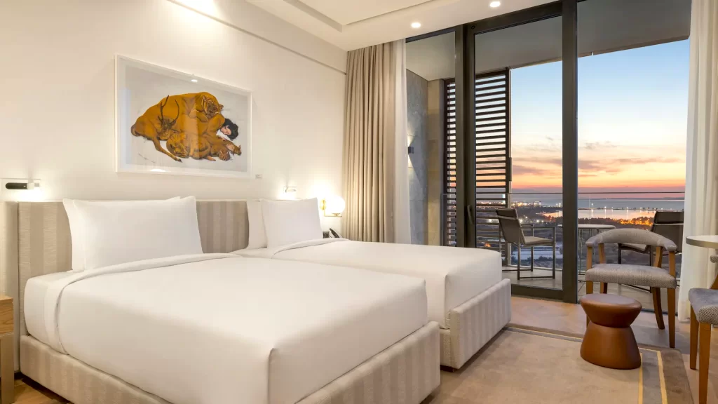 Unwind in this spacious room that features a private balcony overlooking the Gulf of İzmir, as well as two plush twin beds, a work area, a walk-in rain shower and a full marble bathroom.