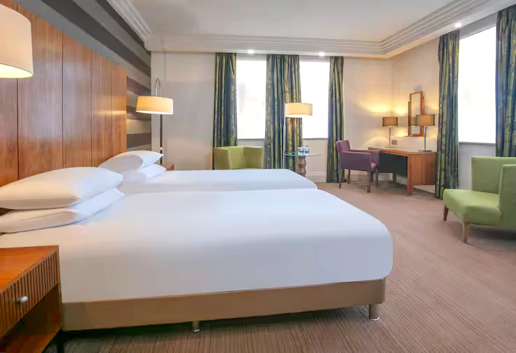 Thoughtful touches make all the difference in this spacious Twin Deluxe guestroom, where you can experience true relaxation and a peaceful night’s sleep. Unwind in front of the flat-screen TV, use the complimentary WiFi, and freshen up in the elegant bathroom.