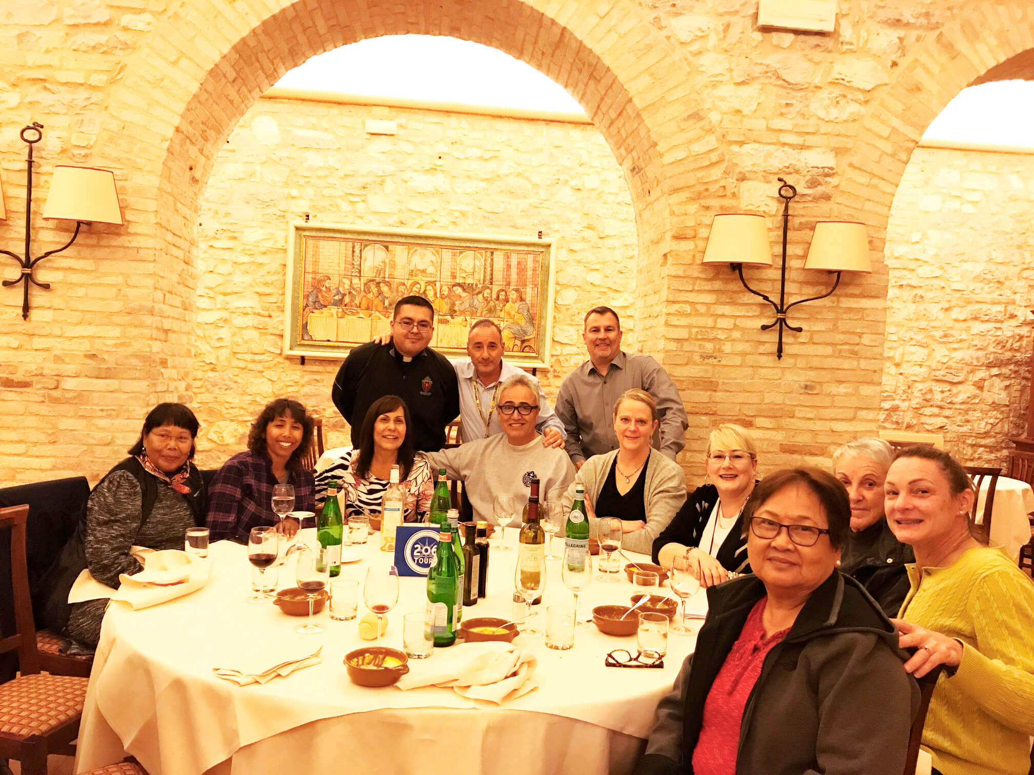 Thank you so much for your email. The Shrines of Italy pilgrimage was absolutely wonderful and I thank 206 Tours for all of your efforts to provide such a meaningful experience for me, as well as my fellow pilgrims. This is the third pilgrimage I have taken (the first was for the canonization of St. John XXIII and St. John Paul II and the second was for the canonization of St. Teresa of Calcutta), and have found each to be a beautiful, unique experience. This pilgrimage was at a time of fewer crowds so I was able to enjoy some of the sites in a more thorough way than during the last two pilgrimages. Our tour guide, Tony, was exceptional. He was extremely organized and made sure that we were on time for all of our tours and events. He was also good at taking care of everyone on the tour and making us feel that we were part of a family while were on our pilgrimage. He was always smiling and full of joy and definitely enhanced the experience. All of the local guides were lovely and provided great background and insight for each area that we visited. My friend Cynthia and I had a small glitch at the beginning of our tour when the transfer that was arranged was not at the airport, but it was taken care of quickly by your staff and Tony, which was much appreciated. The hotels and restaurants were excellent as well. Tony did a good job in giving direction to us for lunches, which was appreciated. Our priest, who had to fill in at the last minute due to the illness of the original priest accompanying the tour, was lovely and humble. He provided beautiful homilies and spiritual guidance throughout the pilgrimage. It was a blessing to have daily Mass, particularly in St. Peter’s and other significant churches, and I hope to be able to continue that practice now that I am back home. I have attached a photo from Monte Cassino, which was one of my favorite stops on the pilgrimage, and a photo of our group (taken at dinner in Assisi). Thank you again for a wonderful pilgrimage experience.