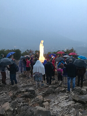 Greetings! The Pilgrimage was an awesome experience. This was my husband’s first trip to Europe and he really had a wonderful experience, this is the 3rd time i have been to Europe, but the first time to Spain and i had a wonderful experience as well. We especially liked the Camino walk to St James and the mass that was celebrated in St James and Fatima. The short distance that we walked gave us a feel for what the Pilgrims that actually walk this journey go thru and meeting a few pilgrims was even a greater experience, especially when we talked to them and they gave us a little of their story, as to how long they had been walking and where they came from. The mass in St James was so meaning full, especially because it was my mother’s 6th anniversary of going to heaven, when Deacon Pete put the inscents in the shrine that was lifted and swung at St James Church, I personally felt my mother’s presence. In Fatima, learning and being in the places where the Angel and our Lady of the Rosary appeared to Lucia, Francesco and Jacinta really made me understand how important it is to pray the Rosary. Being at the chapel and participating in the prayer of the rosary in so many languages was amazing..it was so meaning full especially because my husband, dad, deacon and a friend got to carry the Virgin in the procession, this is an unforgettable experience.