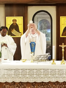 Thank you very much for inviting me to be the Spiritual Director, this week, of your Pilgrimage to Our Lady of Guadalupe. Everything went very well because of our preparations. The flights on United Airlines, all left a little ahead of time and arrived early at the destinations. I am glad that you had asked for a seat with space for my knees. I was always in the 10th row on the aisle, which was perfect. The hotel Galeria (only one “l”) Plaza, where I stayed last time, was very comfortable and their meals were great. The personnel were very kind and helpful. I appreciated that they gave us two 1/4 liter bottles of water each day. The guide, Javier G. greeted us at the airport, assisted by his son, Jr. They were both with us all the time during our tours, They were both helping us on and off the bus. His explanations and suggestions were very good. They were not assigned to bring our group of five, to airport. We arrived at the airport and they were there. They assisted us to the registration and to our gates. The one who came with the van disappeared. The pilgrims were all wonderful. friendly and religious. One, Michael Powel, is a priest from the diocese of Joliette, He concelebrate with me and I offered him to be the main celebrant the last day and he did so very reverently and gave a good homely . He even taught us to sing a hymn in Spanish, and had copies for everyone. I appreciate the itinerary of the pilgrimage and the locations of the Masses. Every place was ready for us. A change had to be made because the new Archbishop of Mexico City was being installed, on our last day, in the new shrine, in Guadalupe. We could not have Mass next door. We were taken to the church of the fifth apparition, where Our Lady appeared to Juan Diego’s sick uncle. That is a most beautiful church, however the acoustics are not good. There is a bad echo. The sacristan showed us historic photos. I had never been there and think it should be included.We were able to return to the main Shrine to visit the areas we had not had time on our first day. We were also there to see the clock in the bell tower with animators of the four apparitions, after the bells had rung noon. We could also hear the beautiful choir for the Archbishop’s installation which was aired outside. As we were ready to leave for lunch, we witnessed the recessional procession with priests, dozens of bishops and finally the new Archbishop Carlos.The van we had for our visits, was perfect for a small group. It enough seats and very large windows. The driver was also very helpful and always smiling.I enjoyed celebrating Mass at the Holy Family church, where the remains, of Blessed Miguel Augutin Pro, are venerated. It was September 3rd, the feast of St. Blais. I asked for the sacristan for two candles. He said he did not have any. At the end of Mass, he brought me two. I was able to bless the throats, including other people who were praying at the shrine. There is a small museum next door to the church. It has the whole story of Fr. Pro with photos of his execution and the relics of what he was wearing and we could see the bullet holes in his coat. They even have the large banner with flew in front of St.Peter’s, in Rome, when he was beatified. Again, I am very grateful to all of you for inviting me to be the chaplain of this pilgrimage. I was afraid I could not make it because of my new artificial knee. But I was able to go everywhere. except climbing the Pyramid of the Sun, which I did in 1970. I also thank you for your most generous stipend. I feel this is not necessary, because to be able to go to visit such special places is a great gift in itself. However, this past year, I have had to replace my television , stove and automobile. The stipend will help me pay part of those bills. Muchissimas gracias.