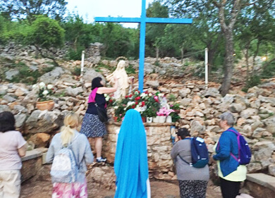 My pilgrimage to Medjugorje in November this year was wonderful. I always look forward going up Apparition Hill and Cross Mountain every time I visit, but the most wonderful thing this time besides the climbing is the day we were with Maria when she had her apparition on the 4th. I had three (3) experiences that day. 1 – when we had Mass at the convent. I sat on the end of the pew next to the broken cross. 2 – After Mass I saw the sun before we got on the bus. And 3 – is when we were with Marie. I couldn’t ask for anything better except for when we went to Tihalina to see the statue of our Lady. What a wonderful experience.