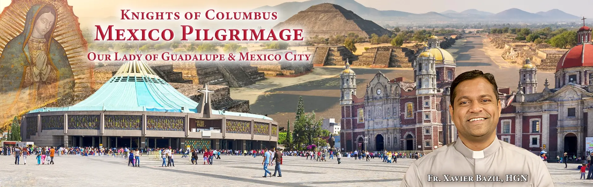 Make your way to your local airport where you will board your flight(s) to Mexico City. Upon arrival, you will collect your luggage in the baggage claim area and continue to the Arrival’s Hall where you will be greeted by a tour guide and/or driver. Transfer to the Shrine of Our Lady for Mass followed by a lunch in nearby restaurant. After lunch you will stop by Shrine for a quick visit before you transfer to hotel for check in. Welcome dinner and overnight in Mexico City.