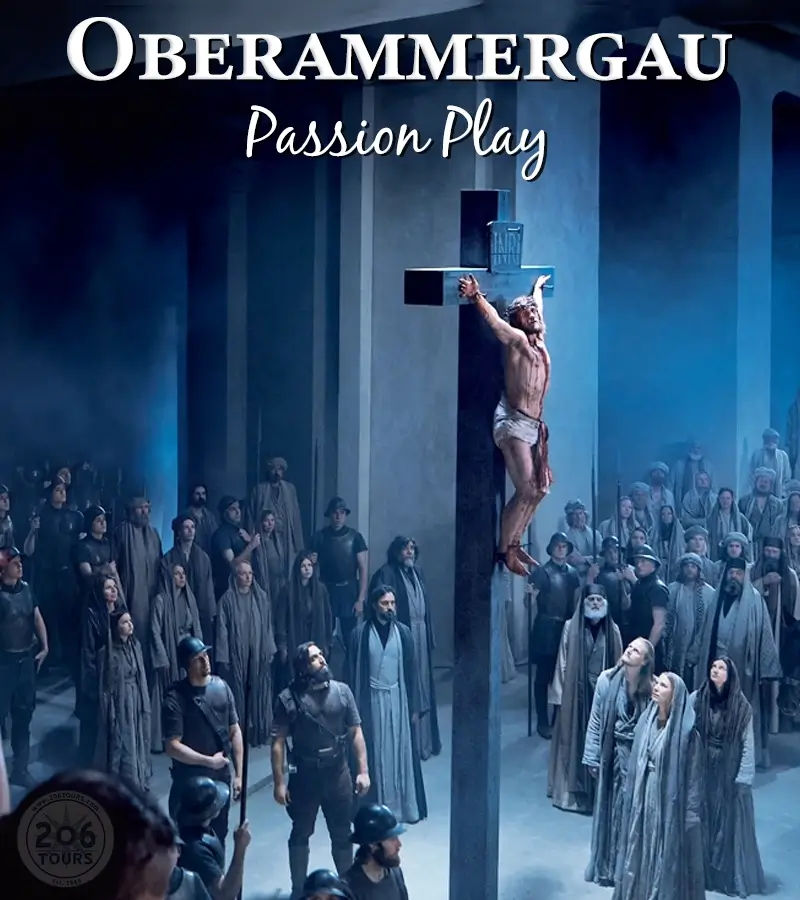 Every 10 years, the little town of Oberammergau puts on its world famous Passion Play! This reenactment of the crucifixion of Christ has a 400 year old history within Germany – it began in 1633 in the face of the “Black Death” facing the region. The townspeople made a promise to God to put on this play every 10-years if they would be spared. Now in 2020, a new virus has affected this tradition, however we faithfully look forward to 2022. Since the tradition began the people within this town, are the Actors, Stage Hands, and Costume Designers. 206 Tours offers a variety of Pilgrimages that will coincide with your Oberammergau experience.About Oberammergau, Passion Play – 2022