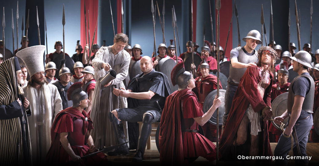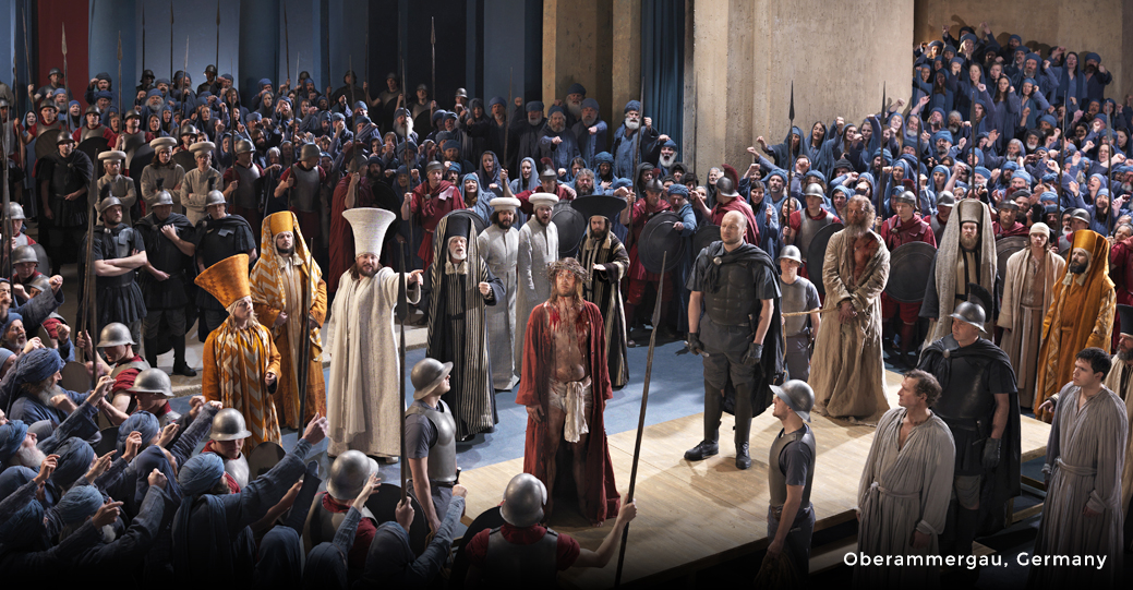 Celebrate Mass at local Church. Enjoy some time to explore Oberammergau’s colorful frescos known as “Luftlmalereien” on house facades and to visit wood carving shops with amazing array of nativity scenesand religious figures. Following lunch, we will make our way to the world famous theatre to attend the performance of a lifetime, the 42nd Oberammergau Passion Play. The sleepy village springs to life every ten years to put on a play that draws the world upon it! We, too, will become part of mission of the Passion of Christ, the greatest story ever told. We all share His message of faith and love! The Oberammergau Passion Play tells the story of the Passion of Christ, beginning with His entry into Jerusalem, followed by His trial, crucifixion, resurrection and ascension. The play is held in a beautiful open air theatre that is praised for its superb acoustics. There are 2,000 actors (and live animals), they include local wood carvers, hotel owners, students, teachers, children, all of them interrupt their schedules to become actors, singers, orchestra members and stagehands. Requirements are strict: all actors must be born in Oberammergau, or have lived there 20 years, or be married to a villager and a resident for 10 years. All natural makeup, such as men let their hair and beards grow a year before the play. Female roles are limited to single women under age 35.