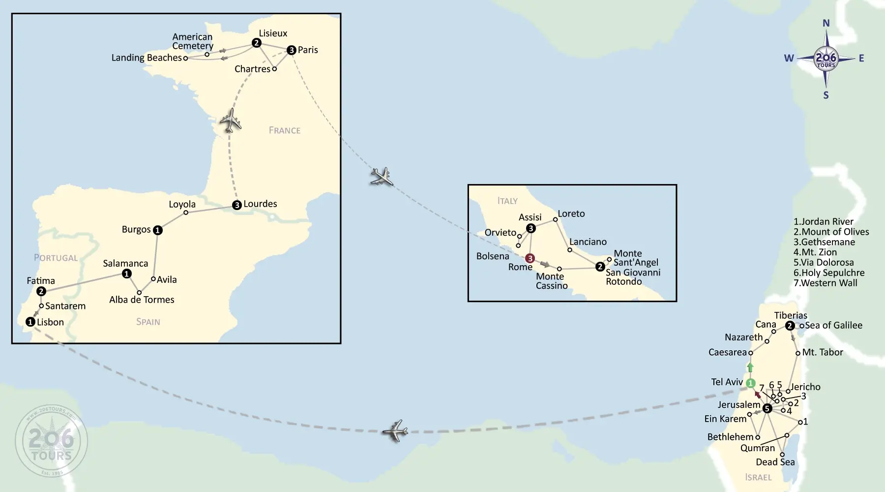 - Breakfast and Dinner daily (lunches are also included daily in Holy Land)