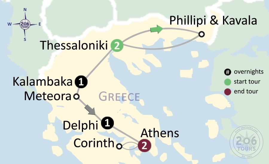 Upon landing at Makedonia Thessaloniki Airport, make your way to the baggage claim area and collect your luggage. Proceed to the Arrival’s Hall, where you will be greeted by your tour guide and/or driver. You will be escorted to the bus to be transferred to your hotel. Enjoy some time to relax after check in and this evening enjoy a delicious meal. Overnight in Thessaloniki.
