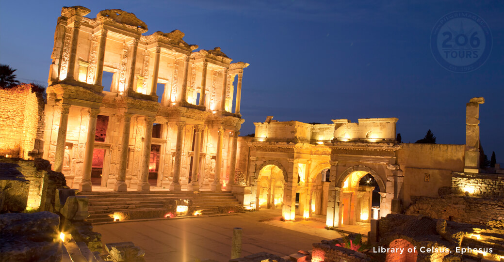 After breakfast at the hotel, we will depart for Ephesus, which was the most influential capital city of Asia Minor on the Aegean Sea. “Ephesus receives praise for its perseverance” (Rev. 2:1-7). You will explore some of the best preserved theatres, fountains and buildings in the world. We then visit the House of the Virgin Mary which was miraculously discovered hidden on a wooded hilltop. A pilgrimage site for many which has also been accepted by the Vatican. Finally visit the Basilica of St. John which stands over the believed burial site of St. John, who is identified as the apostle, evangelist (author of the Fourth Gospel) and prophet (author of Revelation). Continue on to Izmir were our day ends with dinner and overnight.