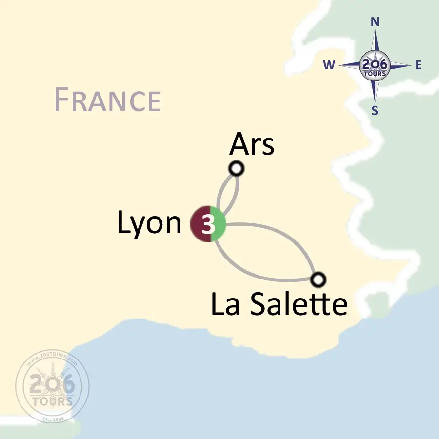 Enjoy a nice breakfast before starting our day exploring Lyon. This city stands on the site of the ancient Roman city called Lugdunum, founded in 43 BC. This city was Gaul’s capital, eventually becoming a major Christian center. This city is filled with renowned history, culture, and architecture. Visit the Basilique Notre-Dame of Fourviere, which was built after the Franco-Prussian War when the people of Lyon had vowed to create a Marian sanctuary if their city was spared. The Basilica blends Gothic and Byzantine styles with a richly decorated interior. Fourviere Hill provides a sensational panoramic view of Lyon. The views extend to the Croix-Rousse and the Terreaux districts, the Quartier Saint-Jean, and the Place Bellecour. In the afternoon, we will depart towards Ars, where we will visit the Shrine dedicated to St. Jean Marie Vianney, the patron Saint of Priests. In Ars, visit the Presbytery and the Basilica, where we will find the incorrupt body of the Cure of Ars. Enjoy a short documentary about his life. Return to Lyon for a delicious meal and restful overnight.