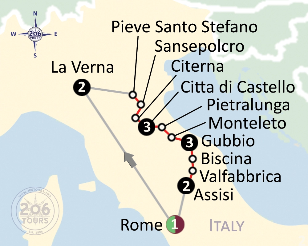 - ~ 2 nights: La Verna Sanctuary, La Verna, Italy