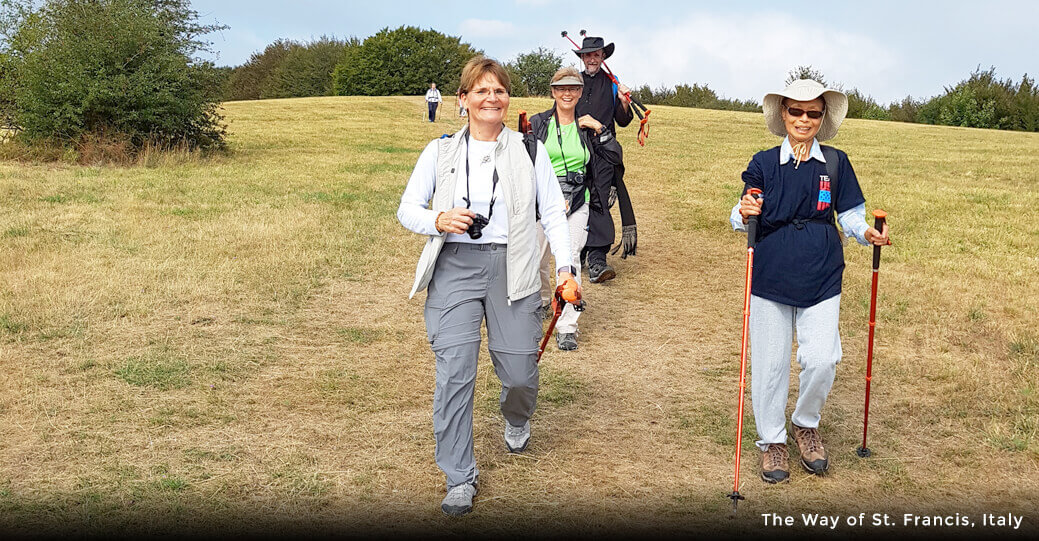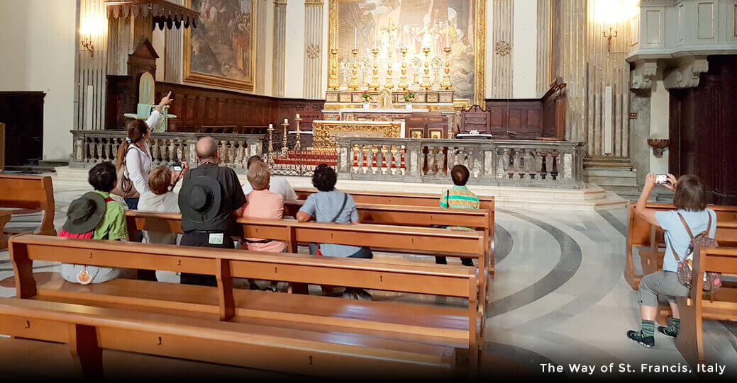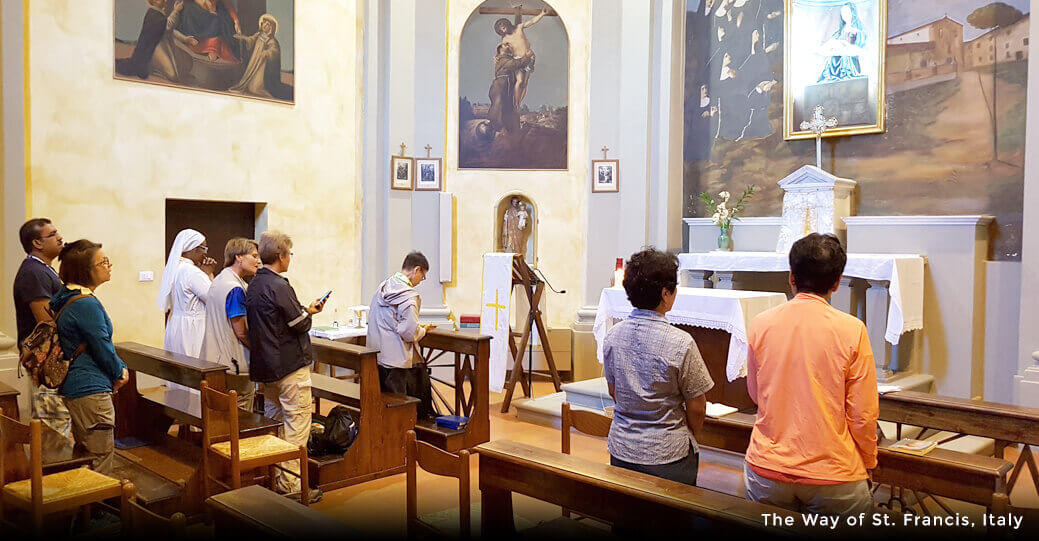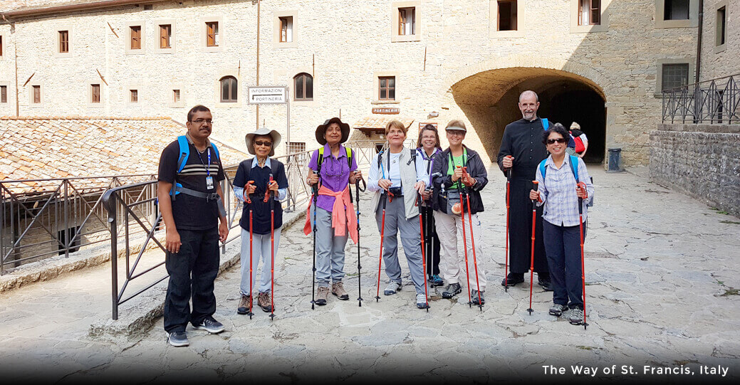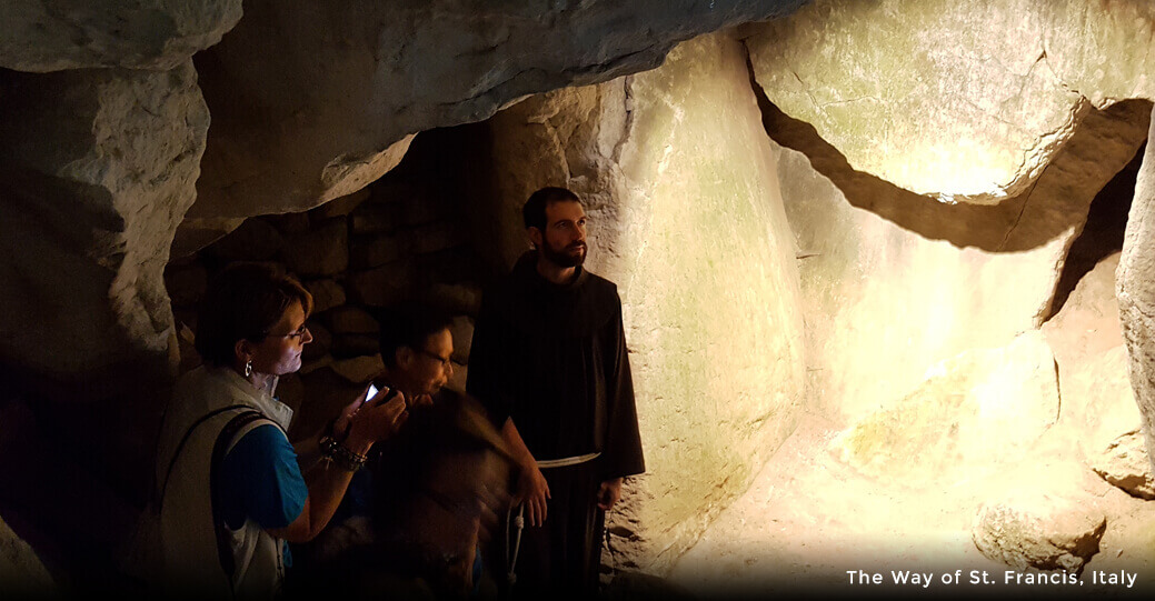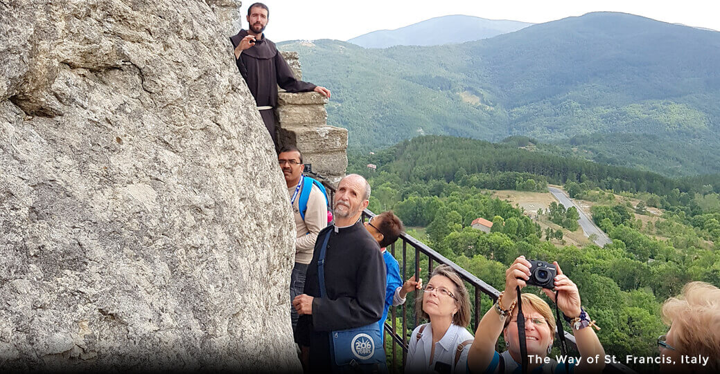 Today we begin our Franciscan pilgrimage. After breakfast this morning we will drive to La Verna (approximately four hours). Following check-in, we will soak in the sacred grounds of La Verna Sanctuary. St. Francis of Assisi visited this site six times in his life, the last time being in 1224. In 1224 St. Francis visited La Verna to pray and fast for 40 days, and it was during this time that he received the stigmata. The rock he was sitting on when he received the holy marks of Christ’s wounds can still be seen and venerated. At La Verna, we will pray in the Chapel of the Stigmata, the Basilica, and the Chapel of St. Mary of the Angels. We will also get the chance to admire the beautiful artwork of Andrea della Robbia. Following this visit, we will enjoy dinner and a restful night’s sleep in La Verna. We will need our sleep before tomorrow when our walking tour begins!