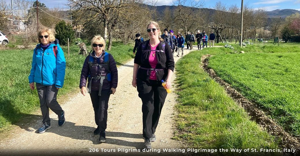 Today we will walk the winding roads through the lowland crossing the Tiber Valley – today, we enter Umbria! The pilgrimage will lead us through the fields of the valley up to the gates of Citerna. Citerna is a small medieval town founded by the Etruscans. The fortress and medieval walls that surround the town will transport you to another age, along with the covered communication trench that stretches along them. According to tradition, when St. Francis stayed here he blessed the hill, calling it “the sacred mountain.” The Church of St. Francis and that of St. Michael the Archangel, which conserves a beautiful panel by Pomarancio, are well worth a visit. We will enjoy dinner and an overnight stay in Citta di Castello.