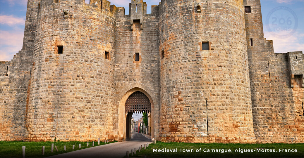 Following breakfast, we will visit Aigues-Mortes, where King Saint Louis embarked on his first crusade. He built the ramparts around the city and harbor, as he wanted to have an opening on the Mediterranean Sea for his troops. You will visit the Constance Tower, used as a prison for women who were considered heretics after the revocation of the Edict of Nantes. Continue to the Camargue region to discover the sanctuary of the Saintes-Maries-de-la-Mer, dedicated to Mary Salome, Mary Jacob, and the Virgin Mary, called Our Lady of the Sea (Notre Dame de la Mer) since antiquity. In 45-46 AD, the Christian message was shared for the first time in France. It spread rapidly to Arles and the Rhone Valley and then up to Lyon during the 2nd century. It is one of the first pilgrimage sites of France. It is especially popular with the Gypsies who are called in France “Gitans”. They come here to worship their saint patron, Sara, whom they believe was the servant who accompanied the Holy Women. The bodies of the Saintly Women lay here: Mary Salome, mother of James the Major and John the Evangelist, and Mary Jacob, mother of James the Minor and Joseph. They followed Christ and were the first to bring the message of the Good News of his Resurrection. After they fled Palestine, they arrived on the coast of the Camargue with Mary Magdalena, Martha, and Lazarus. In his testament in 542, Saint Cesaire, Bishop of Arles, mentioned a church dedicated to Our Lady of the Raft. In the 9th century, with the invasions of the Sarrasins, a fortified church was constructed. It incorporated the primitive church holding the bodies of the Saint Women. In 1448, King Rene ordered a dig and placed the relics in reliquaries in the upper church. Celebrate Mass and then continue to Avignon for dinner and overnight.