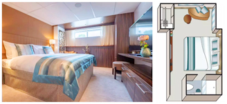 - Fascinating river cruise in on outside river-view stateroom of your choice, most with French balcony or drop-down panoramic windows; Walk-out balconies in Suites